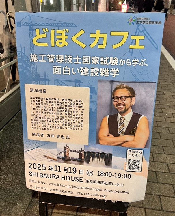 その夜は「どぼくカフェ」に誘われて、施工管理技士国家資格に関する資格勉強や建設に関する話を、クイズや雑学を交えながら学ぶ機会がありました。
