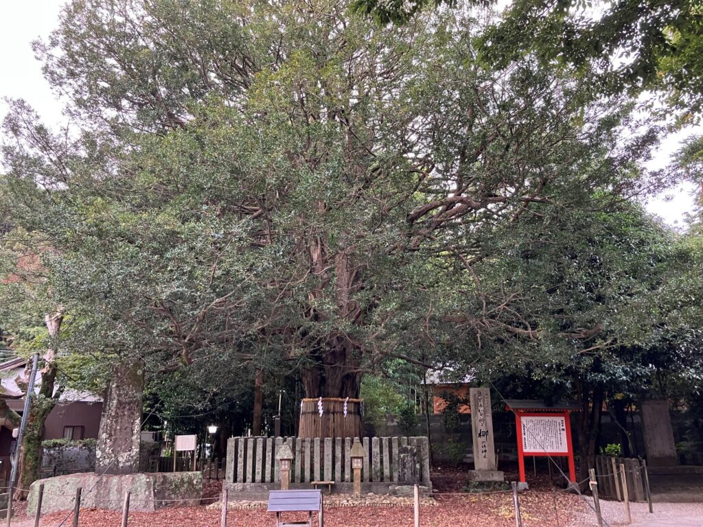 ▲ご神木の「梛(なぎ)の木」 夫婦円満・縁結びの象徴とされています。お参りは必須です。