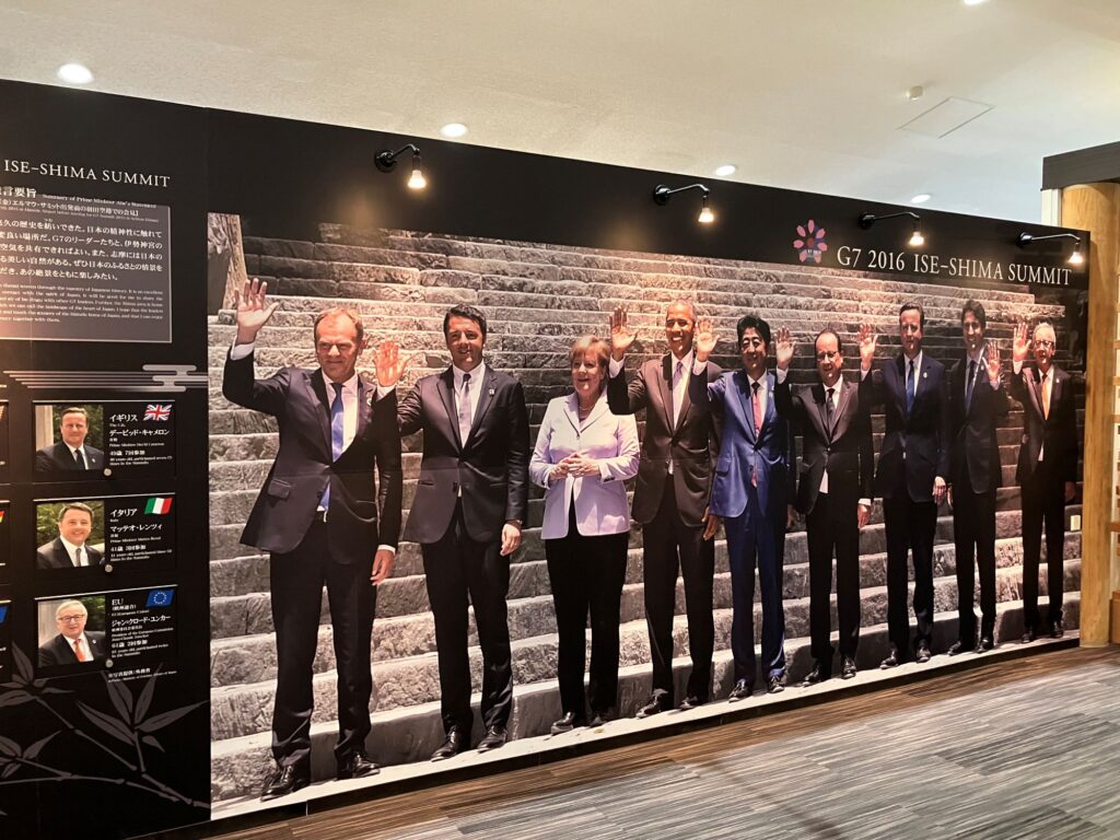 ▲今では懐かしいG7の首脳たちが写った等身大パネル(撮影は伊勢神宮で行われたそうです。)